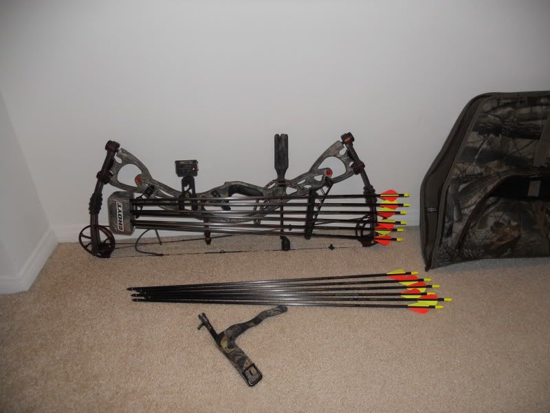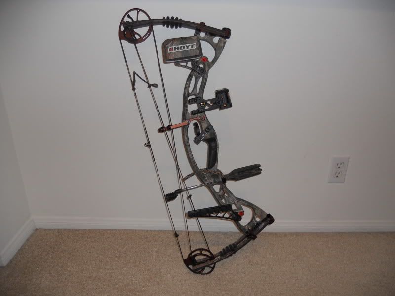 Hello all, this is my first post. Today I bought my first bow. I got a Hoyt Rampage XT. All I can say is wow! I have never in my life shot a compound bow in my life until today. I had no Idea how powerful and smooth a modern bow could be. I used to shoot an old Bear recurve when I was a teenager, it was nothing like this. It's set at 60# with a 27" draw length, shooting 400 grain Easton carbon arrows. My local pro shop was awesome, they took me by the hand and got me set up, I couldn't be happier! I was so excited I went to the range in the rain to shoot it. http://i23.photobucket.com/albums/b...82686375_100000505845313_822658_4976592_n.jpg My very first shot,ever (not counting the one at the shop 5 feet away!) at 20 yards. http://i23.photobucket.com/albums/b...02686363_100000505845313_822661_3158461_n.jpg First 6 shot group http://i23.photobucket.com/albums/b383/4l60e/NewBow130.jpg http://i23.photobucket.com/albums/b383/4l60e/NewBow129.jpg The new money sink!