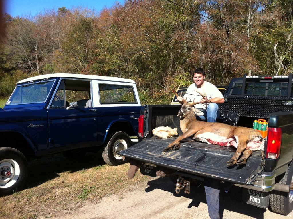 So me and a good friend of mine put alot of work scouting, trail cameras, and putting stands up since august this year and we believed we deserved to be rewarded this year. Little did we know it would happen an hour and 45 minutes into opening day. SO I am planning the hunt the night before and thinking out of all the stands we put up which ones we would have the best chances on opening day. Narrowing it down to the 2 we will take we wait for the alarm at 4:30. For some reason I give my buddy the stand I was gonna sit and take one 150 yards from him. We got into the stands around 5:30 and waited what seemed hours for shooting light. I hear movement all around me before sun up and nothing after sun up. So about 7:45 i get a tx from my buddy I shot a buck..I think he is full of it and before I can tx him back he calls me so I know he is for real because he is blowing up my spot now. He has never shot at a deer with a bow or rifle so I can tell talking to him it's for real. About 45 minutes later I make my way over to him and he is so excited he is almost falling out of the stand. After a 30 minute track we found him in a small brook all done...lung shot. He was so excited when I got to him he had no idea if he had even hit him. I was just as happy as if I shot him because I basically set up the hunt and it went perfect...could of been a little happier if it was mine but made my day seeing how happy he was....He dressed out at 200 even and had 9 points......A day I will remember for a long time!!!! Ill try to get a pic up soon computer isnt cooperating!!!